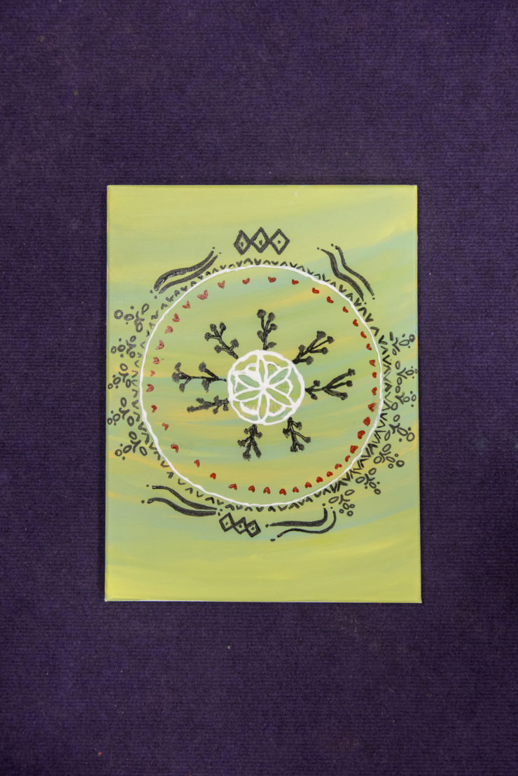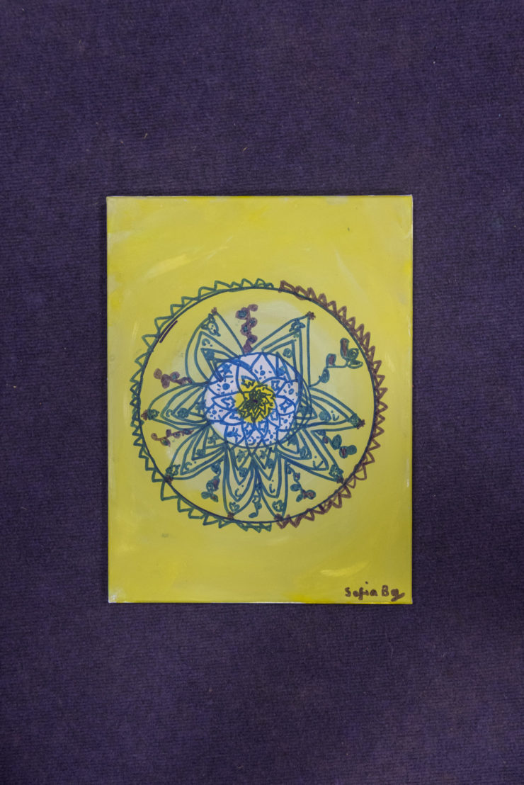 Mandala works of art by children attending the workshop.